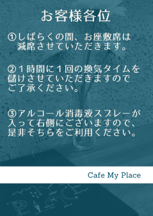 しばらくの間、お席を減らす等の対応を